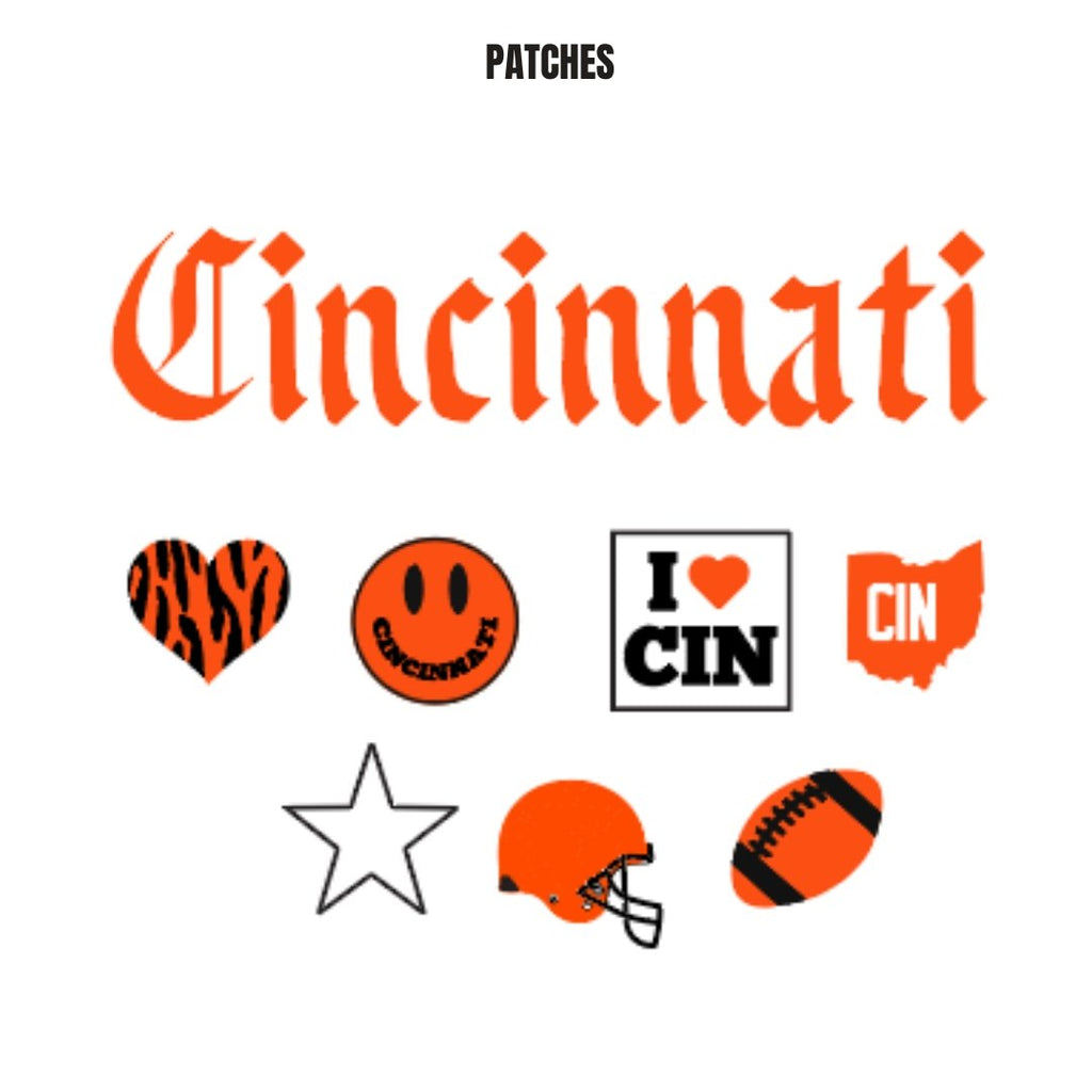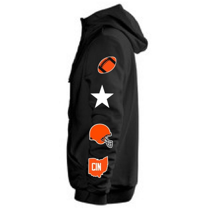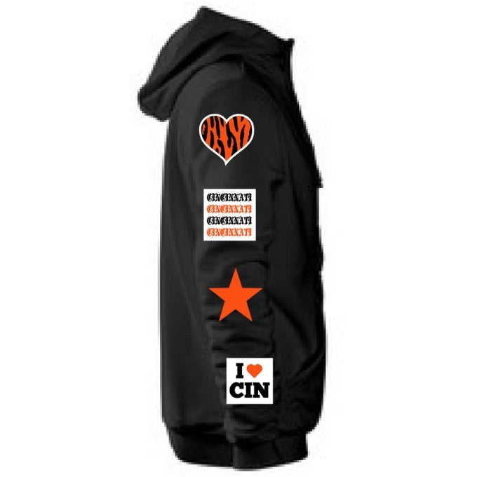 Cincinnati Black Hoodie with Custom Sewn Patches
