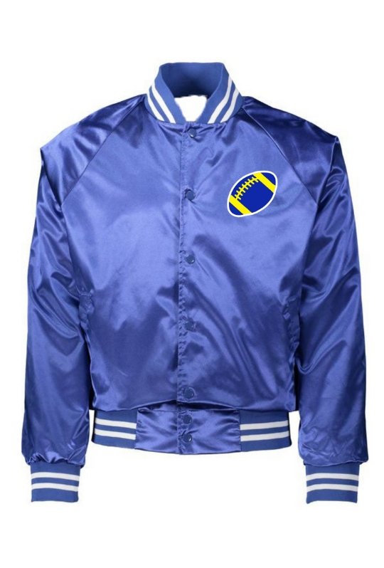 Los Angeles Royal Blue Satin Bomber with custom sewn patches (Los Angeles in ombre) Runs True to Size